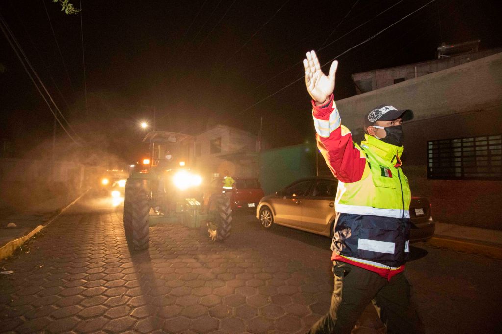 Marco Mena dio a conocer que por las noches las brigadas desinfectan calles, sin daño al ambiente, para prevenir contagios de Covid-19.