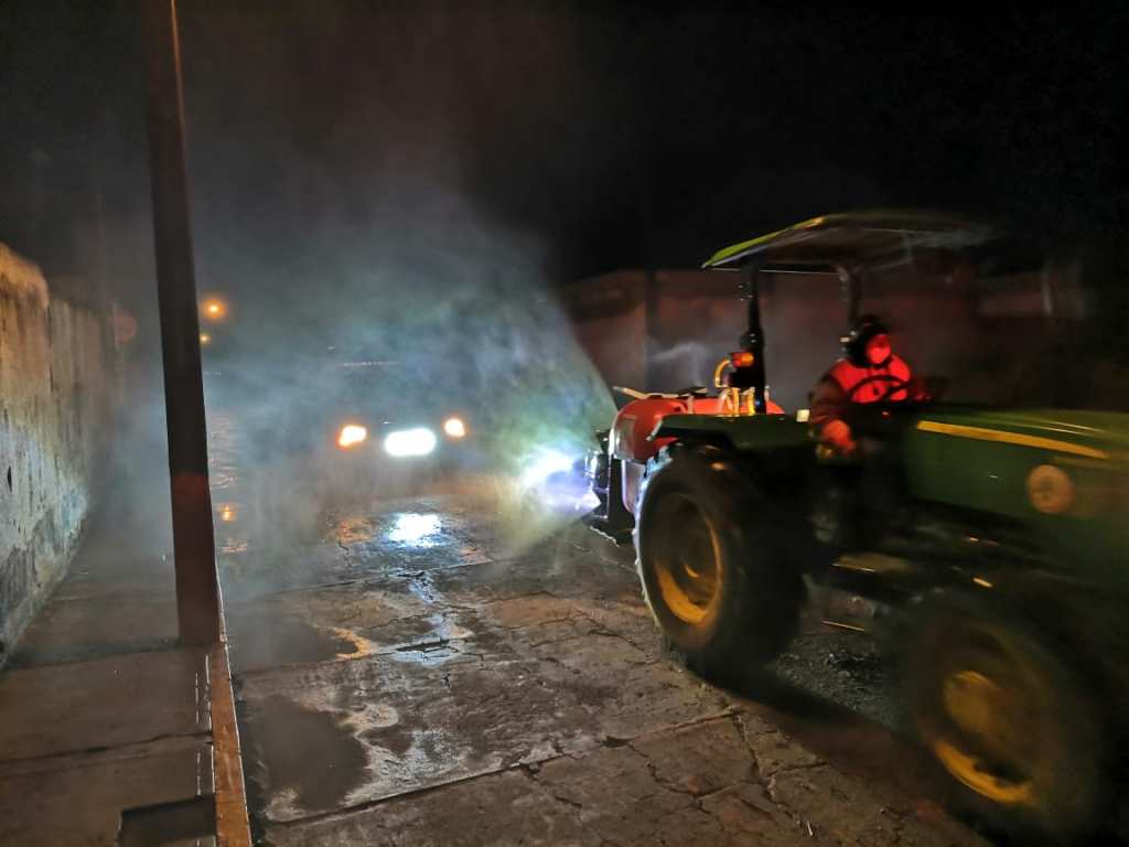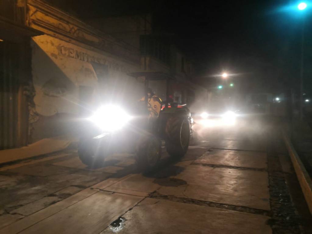 La madrugada de este viernes 8 de mayo, el contingente conformado por patrullas de seguridad pública municipal, estatal, una pipa de agua, un tractor que transporta el aspersor, unidades de PC estatal, así como elementos de las corporaciones mencionadas recorrieron distintos puntos de nuestro municipio; con la finalidad de continuar con las acciones de prevención y hacer frente a la lucha contra el Coronavirus.