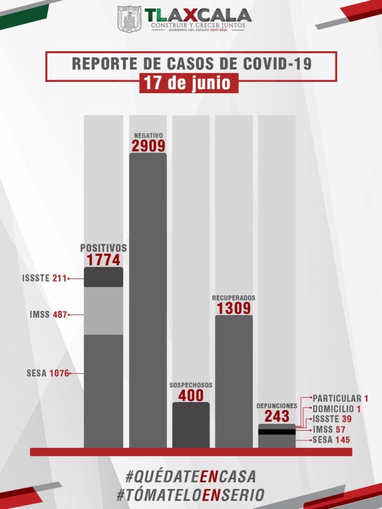 De esta manera, la entidad registra mil 309 personas recuperadas, mil 774 casos positivos y 243 fallecimientos.