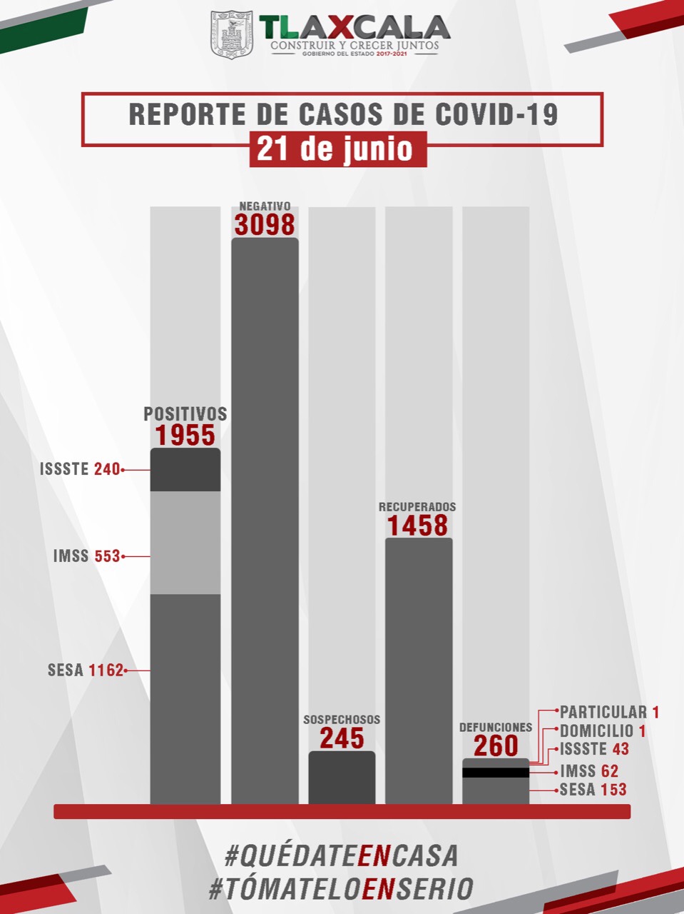 De esta manera, la entidad registra mil 458 personas recuperadas, mil 955 casos positivos y 260 fallecimientos.