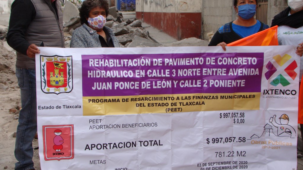 La obra que realiza el ayuntamiento en la calle 3 norte entre avenida Juan Ponce de León y la calle 2 poniente comprende 781.22 metros cuadrados de rehabilitación de pavimento de concreto hidráulico y una inversión de 997 mil pesos del Programa de Resarcimiento de la Finanzas Municipales del Estado de Tlaxcala.