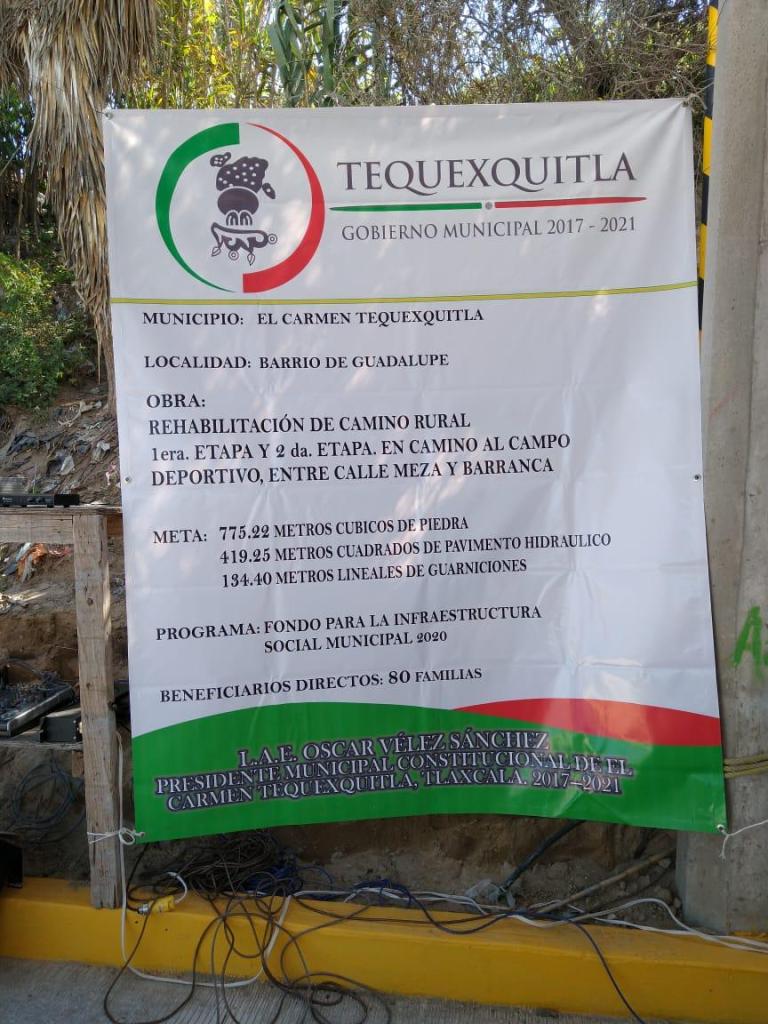 Vélez Sánchez, al hacer uso de la palabra expreso que la rehabilitación de camino rural primera y segunda etapa en camino al campo deportivo entre calle meza y barranca, se llevó a cabo con el Fondo para la infraestructura social 2020, beneficiando directamente a 80 familias.