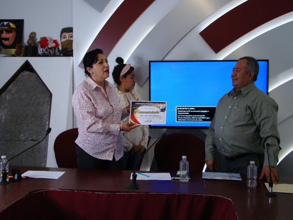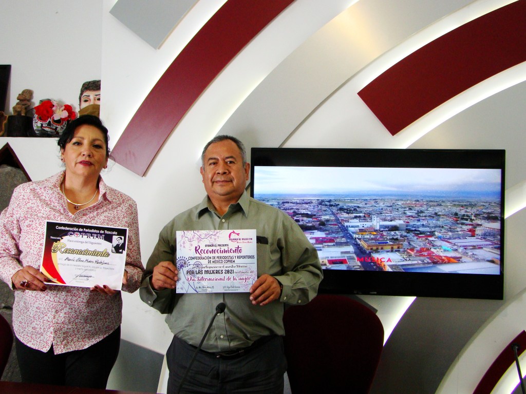 Cabe destacar que la Confederación de Periodístas y Reporteros de México AC, Presidida por Virgilio Osorio Nava, entregó en manos del Periodísta Félix Teloxa, el reconocimiento a la trayectoria de María Elena Muñoz Rodíguez y reconocío su labor en favor de la mujer huamantleca, y por supuesto la Tlaxcalteca..