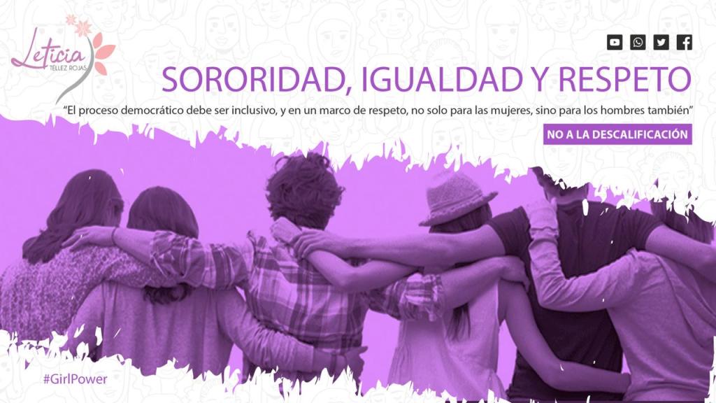 (sic) “Sororidad, igualdad y respeto. El proceso democrático debe ser inclusivo, y en un marco de respeto entre hombres y mujeres. NO A LA DESCALIFICACIÓN, escribió en Twitter.