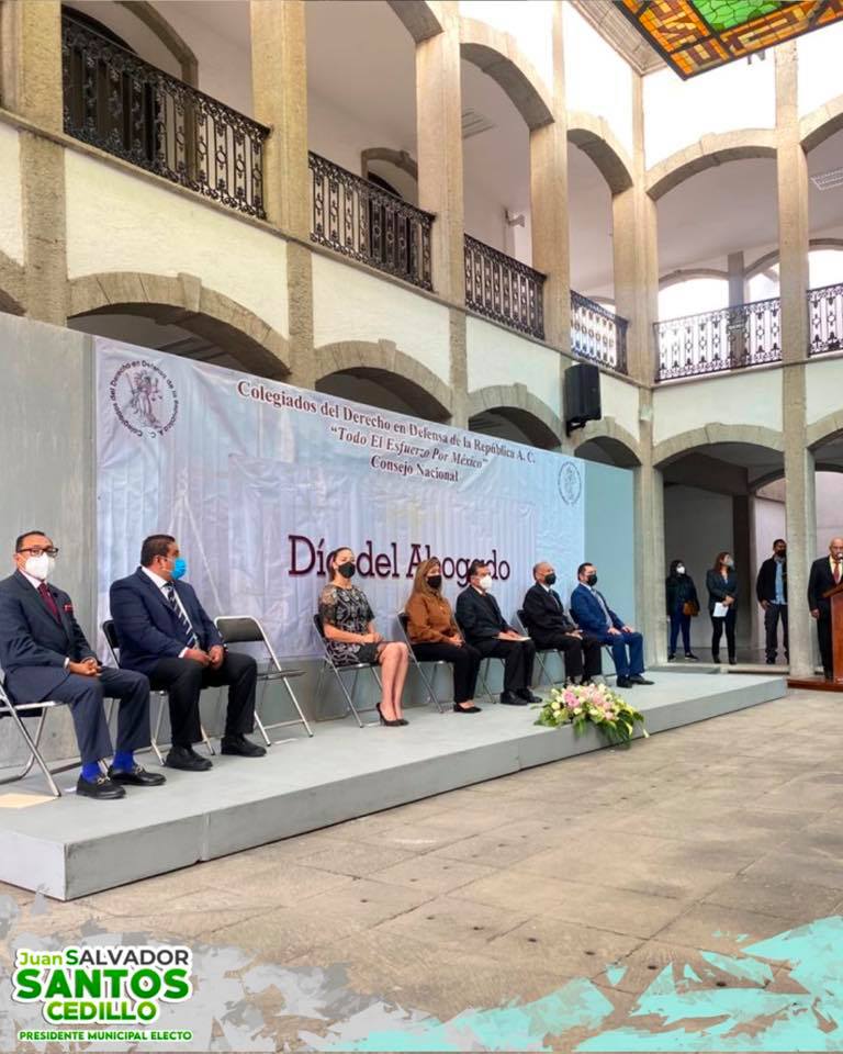 Tlaxcala, Tlax.- Este día el Presidente electo del municipio de Huamantla, Salvador Santos Cedillo asistió al evento cívico en el patio vitral del congreso del Estado, a expresa invitación de los integrantes del Consejo Nacional de Colegiados Del Derecho en Defensa de la República A.C.