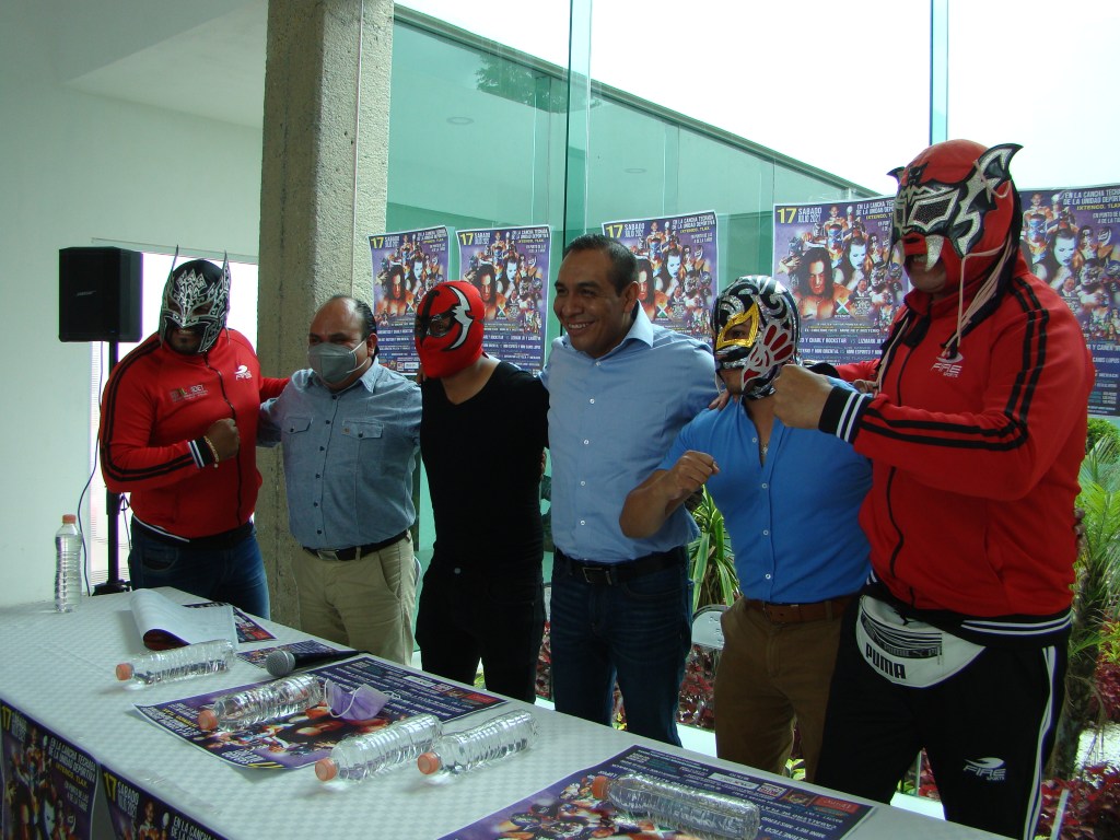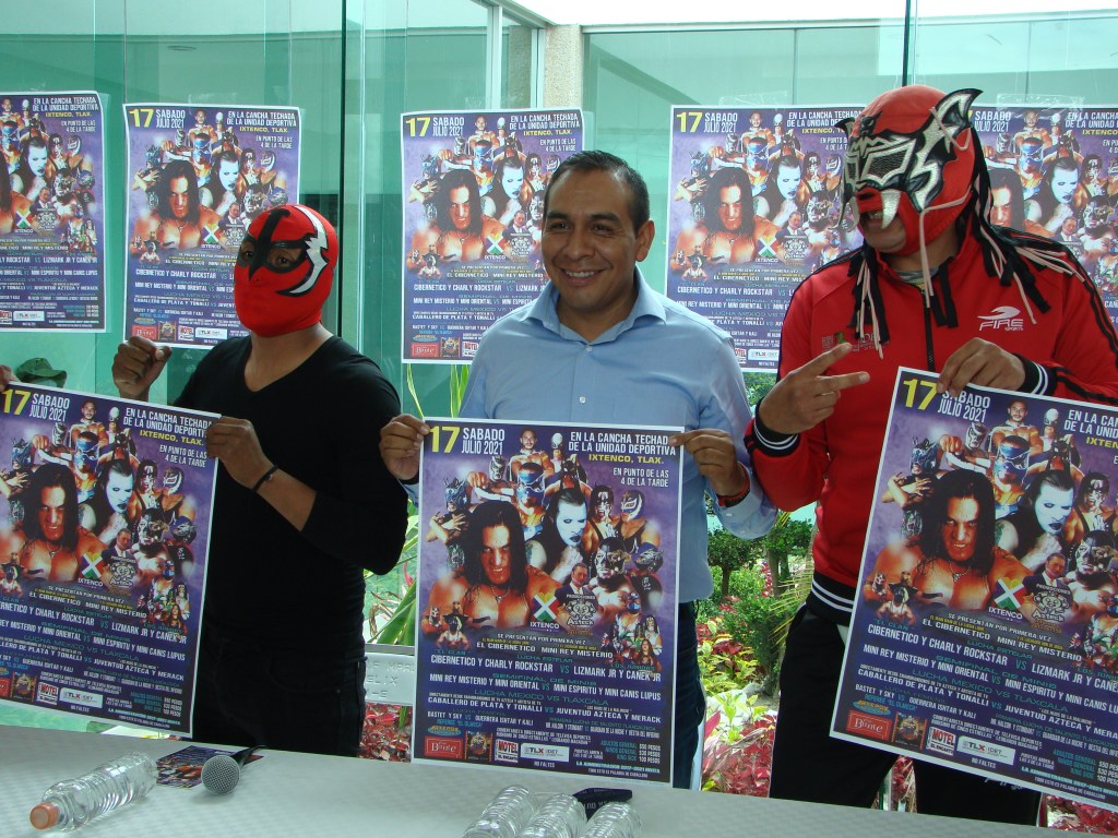 Presentan cartel oficial de la función de lucha libre profesional, para este Sábado 17 de Julio en la cancha techada de la Unidad deportiva “Tlahuicole” con la presencia del Alcalde Miguel Ángel Caballero Yonca , exhibieron el cartel de este magno evento.