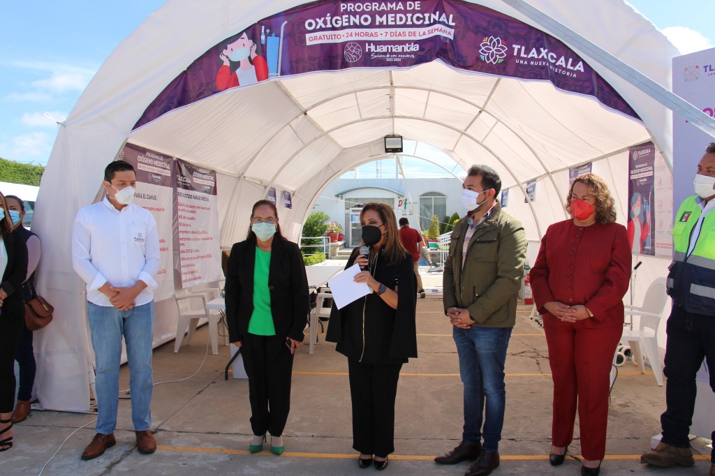 La gobernadora del estado, Lorena Cuéllar Cisneros constató la apertura de dos Kioscos de Recarga de Oxígeno Gratuito en los municipios de Huamantla y Apizaco, estrategia que tiene como fin apoyar a las familias tlaxcaltecas que tengan pacientes con Covid-19 y que no cuentan con los recursos suficientes para adquirirlo.