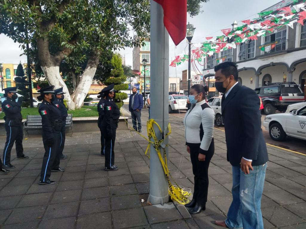 En la explanada del parque municipal, los presentes guardaron un minuto de silencio y realizaron los honores al Lábaro Nacional.