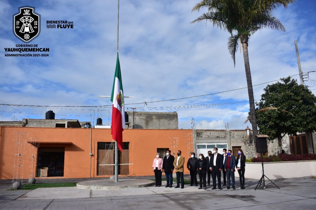 En presencia de las autoridades municipales de Yauhquemehcan, personal del ayuntamiento y población en general, esta mañana se realizó el izamiento de bandera en la Plaza de los Constituyentes para conmemorar el 174 aniversario de la Batalla de Chapultepec y la gesta heróica de los Niños Héroes.