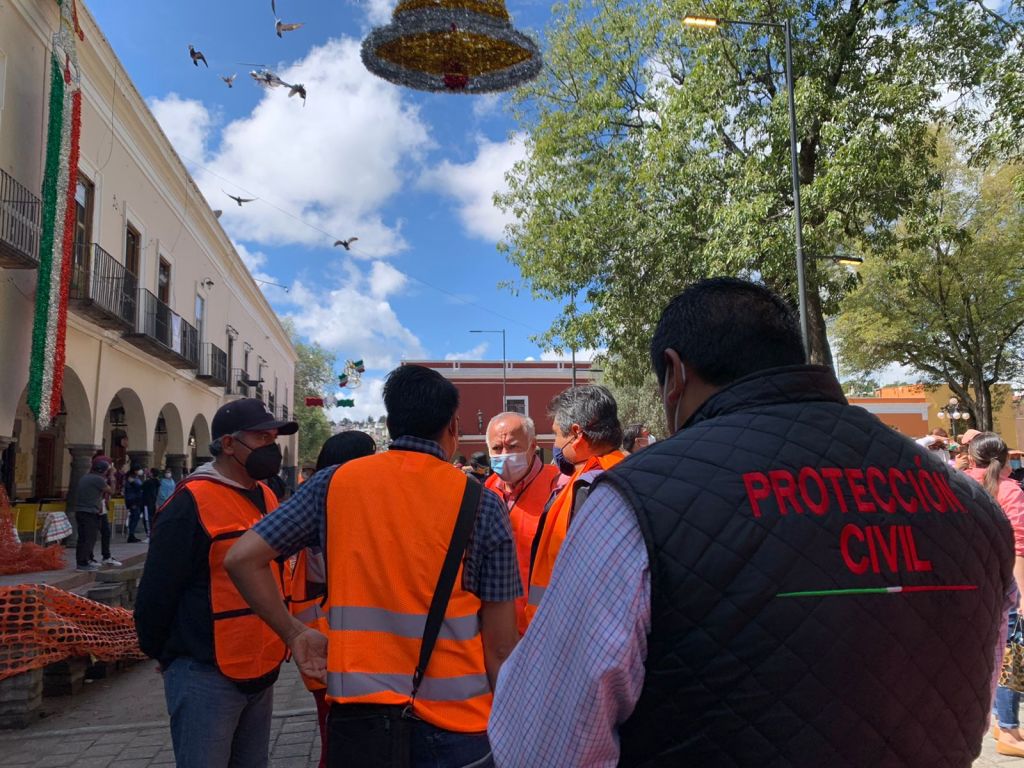 A las 11:30 horas se escuchó la alerta con la que los 50 trabajadores que se encontraban en el Palacio del Ayuntamiento de Tlaxcala, salieron de manera ordenada a los puntos seguros designados por autoridades de protección civil.