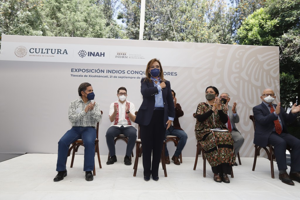 La gobernadora Lorena Cuéllar Cisneros, la titular de la Secretaría de Cultura del Gobierno de México, Alejandra Frausto Guerrero, el director general del Instituto Nacional de Antropología e Historia (INAH), Diego Prieto Hernández; y el director general del Instituto Nacional de Estudios Históricos de las Revoluciones de México (Inehrm), Felipe Ávila Espinosa, inauguraron la exposición «Indios Conquistadores».