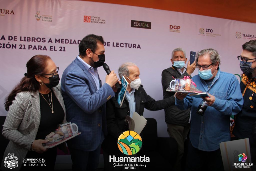 Huamantla, Tlax.- El Presidente Municipal de Huamantla, Salvador Santos Cedillo, acudió como invitado de honor a la presentación y entrega de libros de la colección “21 para el 21”, acciones que forman parte del Fondo de Cultura Económica y el Gobierno del Estado de Tlaxcala que encabeza la gobernadora Lorena Cuéllar Cisneros.
