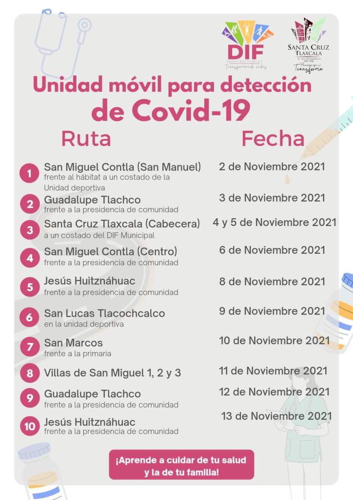 - Unidad móvil para la detección de COVID- 19 este 4 y 5 de noviembre en Santa Cruz Tlaxcala