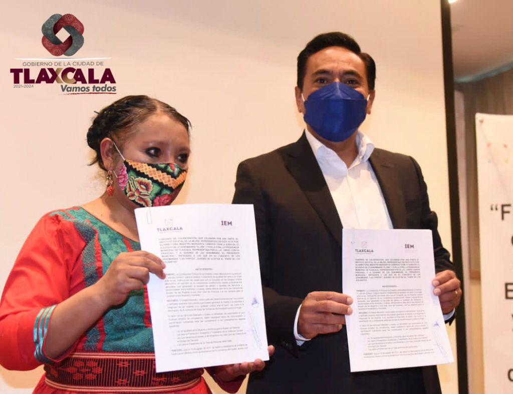 El Ayuntamiento de Tlaxcala, presidido por el alcalde, Jorge Corichi, y el Instituto Estatal de la Mujer (IEM), representado por su titular, Margarita Cisneros Tzoni, firmaron este día un convenio de colaboración para establecer estrategias que privilegien la igualdad de oportunidades entre hombres y mujeres y garanticen la equidad de género, en el marco de la Ley General de Acceso a la Mujeres a una Vida Libre de Violencia y la Ley General para la Igualdad entre Hombres y Mujeres.