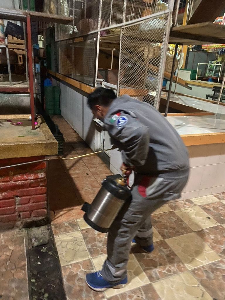 Una de las acciones primordiales en el mercado municipal para evitar focos de contagio por roedores y otra fauna de la zona es la fumigación periódica del inmueble por ello el pasado martes se llevó a cabo una jornada de fumigación, beneficiando a los comerciantes del lugar.