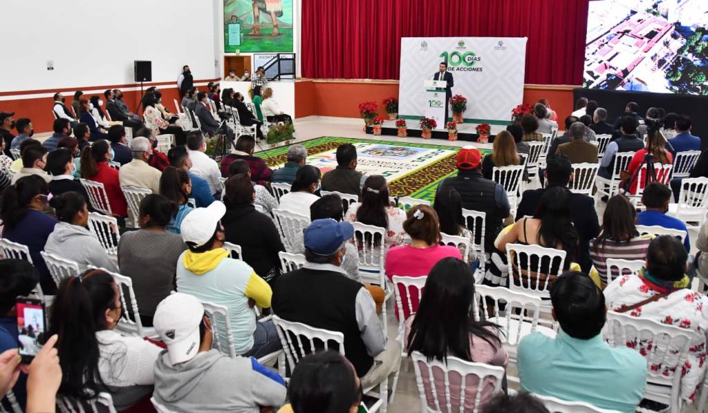En el Auditorio de la Ex Cancha 13, Santos Cedillo, refirió ante miembros del cabildo, presidentes de comunidad y representantes de los poderes Ejecutivo y Legislativo, que al cumplirse los primeros cien días de esta administración 2021-2024, hay resultados que suenan fuerte por sus beneficios en favor de la gente.