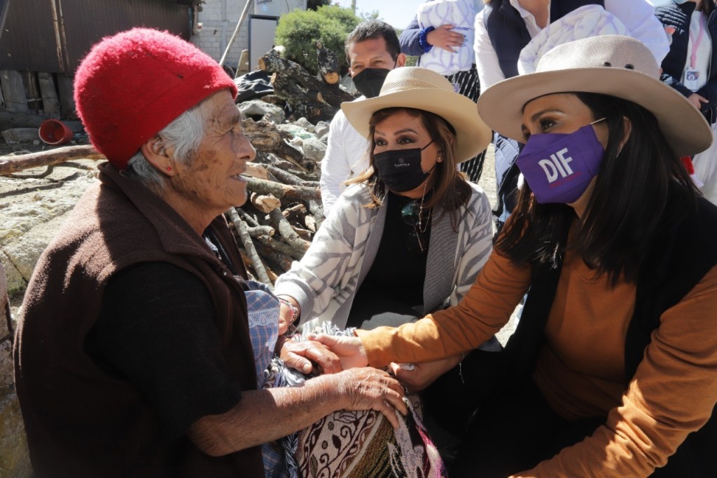 La gobernadora Lorena Cuéllar Cisneros y la presidenta honorífica del Sistema Estatal para el Desarrollo Integral de la Familia (Sedif), Mariana Espinosa de los Monteros Cuéllar, entregaron cenas navideñas y cobijas a familias vulnerables del municipio de Huamantla para que celebren las fiestas decembrinas y se protejan de las bajas temperaturas.