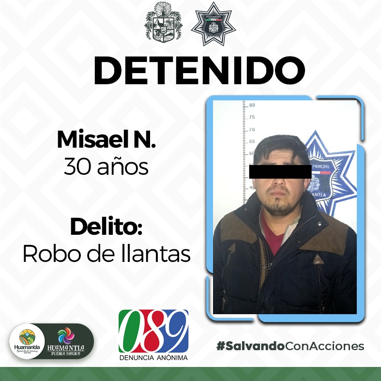 Los hechos ocurrieron cuando una persona se percata de que intentaban quitarle una llanta de su automóvil, por lo que da aviso a la corporación de seguridad de Huamantla, que a través del Grupo de Operaciones Especiales (Gopes), lleva a cabo la persecución dándole alcance y logrando su detención.