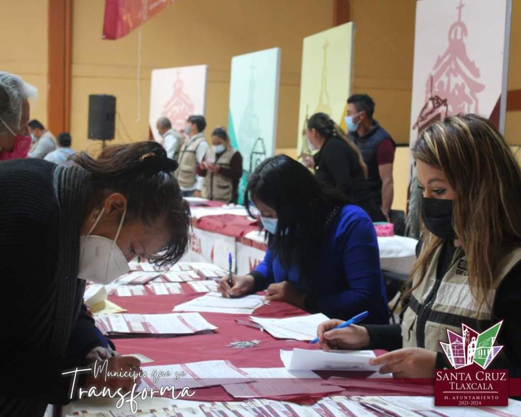 El Delegado del Bienestar Carlos Luna Vázquez en compañía del Alcalde del municipio de Santa Cruz Tlaxcala, David Martínez Del Razo, atestiguaron la entrega de tarjetas del bienestar para adultos mayores de 65 años y más, del periodo 2021-2022 en el auditorio anexo a las instalaciones de la presidencia municipal.