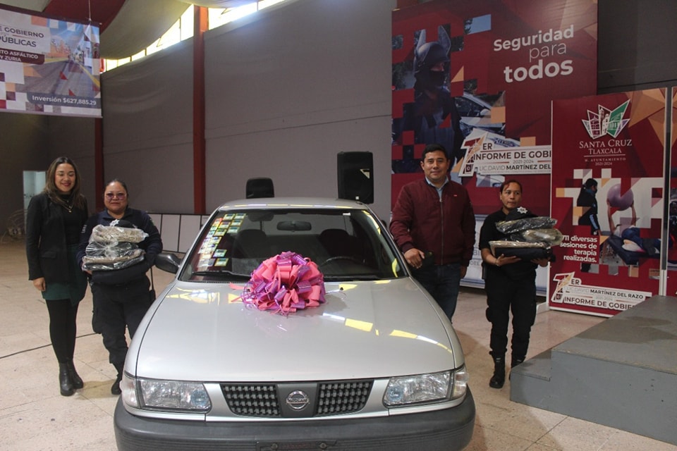 El H. Ayuntamiento de Santa Cruz Tlaxcala encabezado por David Martínez del Razo entregó uniformes y patrulla rosa a elementos de Seguridad Pública Municipales este día.