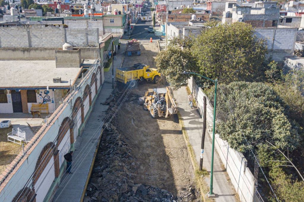 Esta obra ejecutada por el Gobierno del Estado de Tlaxcala, a través de la Secretaría de Infraestructura del Estado, consiste en trabajos de rehabilitación de la red para drenaje sanitario, rehabilitación de agua potable, construcción de guarniciones y banquetas, así como reencarpetamiento.