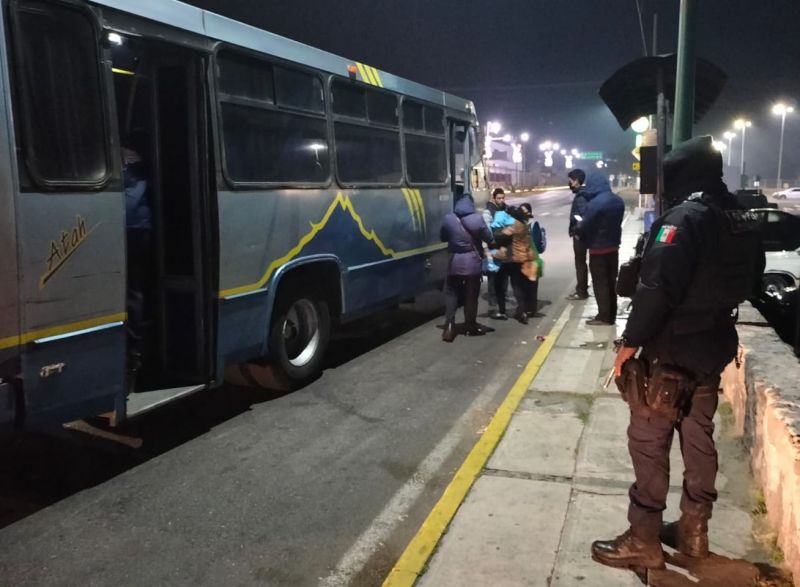 Desde las 6:00 de la mañana se implementa este operativo con el acompañamiento de elementos del Grupo de Operaciones Especiales (Gopes), de la Unidad Canina K9, y tránsito municipal, en las bases de ascenso y descenso de las entradas y salidas poniente y oriente de la cabecera municipal.