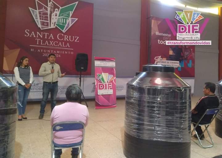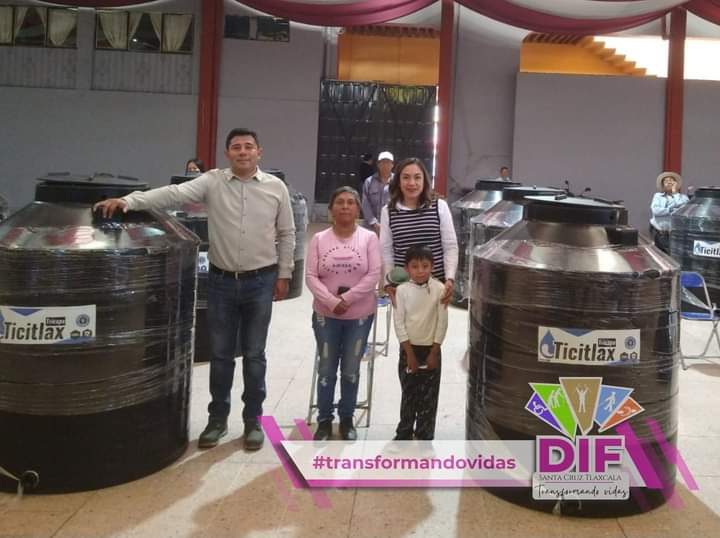 Familias del municipio de Santa Cruz Tlaxcala fueron beneficiados con el programa “Agua para todos”, con la entrega de tinacos Tricapa con capacidad de un mil 200 litros, esta acción fue en coordinación de Sistema Municipal DIF presidido por Montserrat Loyo Espíndola y el H. Ayuntamiento que preside David Martínez Del Razo.