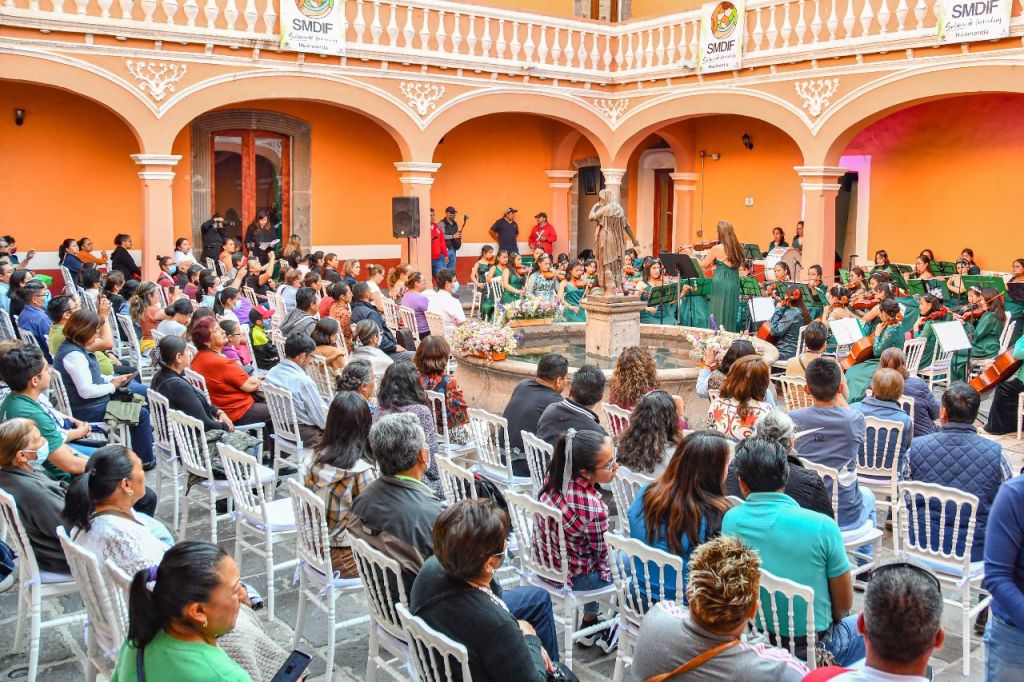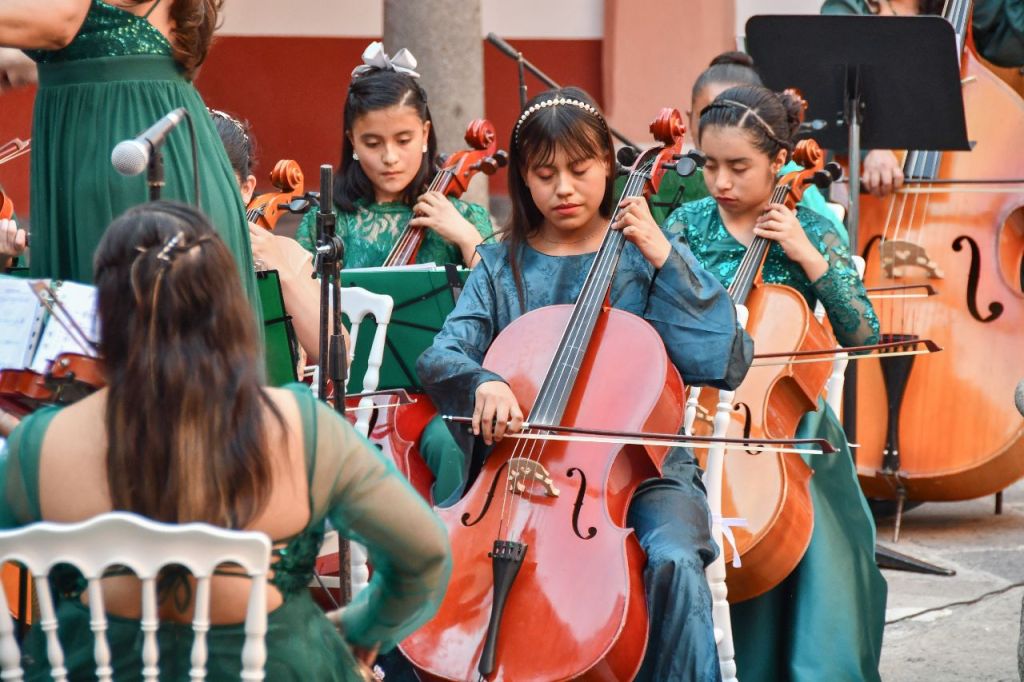 Para finalizar las actividades de este día, en el Centro Cultural de Huamantla se presentó la Camerata Femenil Matlalcuéyetl, que destaca por ser una de las orquestas en todo el país que está integrada únicamente por mujeres y que impulsa el talento musical de niñas y jóvenes.