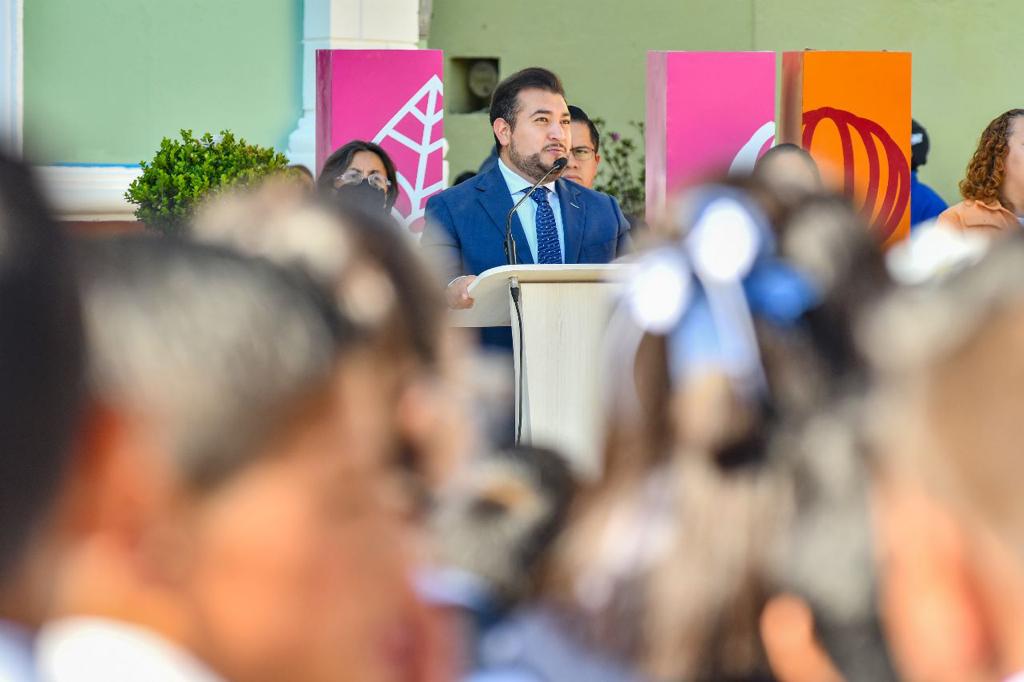 Acompañado por autoridades municipales y académicas, así como alumnos y padres de familia, el alcalde Salvador Santos hizo un llamado a la unidad y al trabajo en equipo, para alcanzar más y mejores resultados a favor de Huamantla.