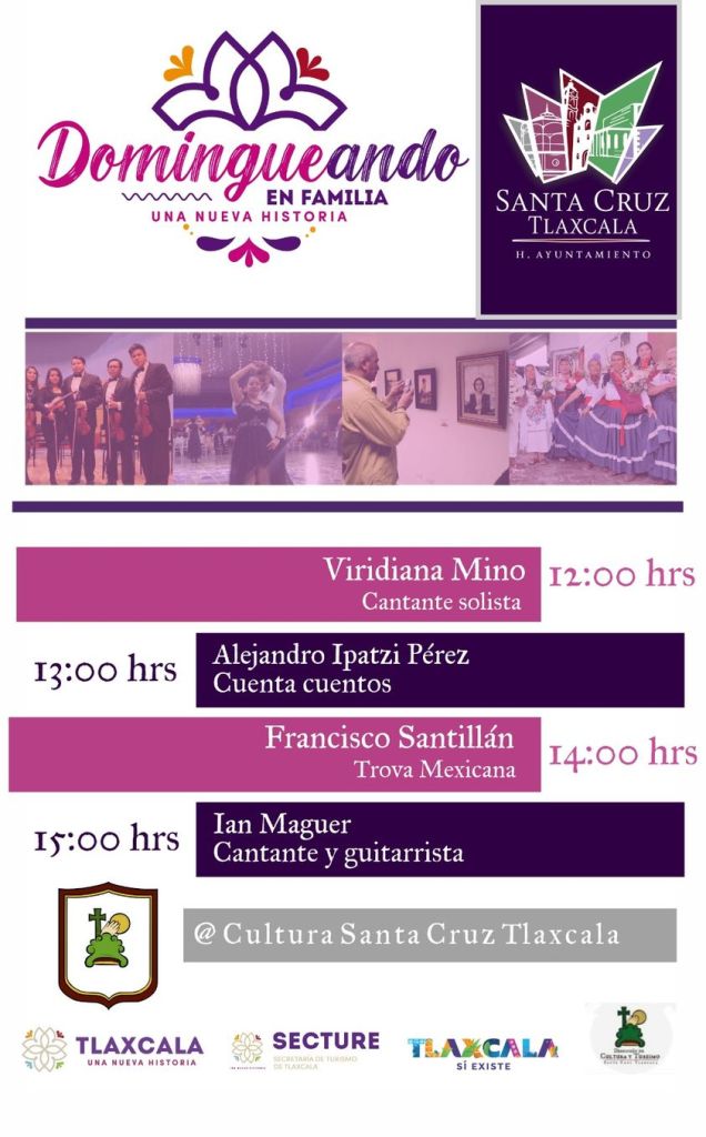El Gobierno del Estado de Tlaxcala a través de la Secretaría de Turismo y en coordinación con el H. Ayuntamiento de Santa Cruz Tlaxcala encabezado por David Martínez Del Razo, invitan a toda la ciudadanía del municipio a disfrutar “Domingueando en Familia” el próximo 2 de abril a partir de las 12:00 hrs en la explanada Municipal.