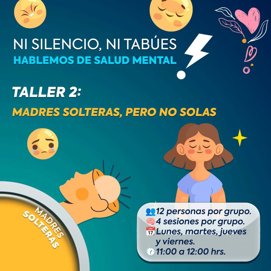 · El taller “Madres solteras pero no solas”, en un horario de 11:00 a 12:00 horas.