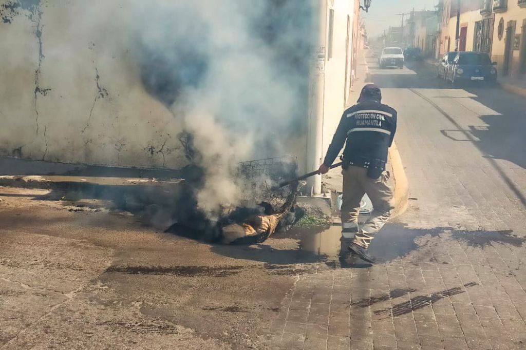 Los hechos se registraron en calle Reforma sur y Negrete, donde policías municipales identificaron que se estaba quemando un colchón abandonado en la calle junto a una pila de basura, por lo que solicitaron el apoyo de la Coordinación de Protección Civil de Huamantla para sofocar el fuego que ya alcanzaba una altura considerable, asegurando el área y protegiendo a los transeúntes de posibles daños.