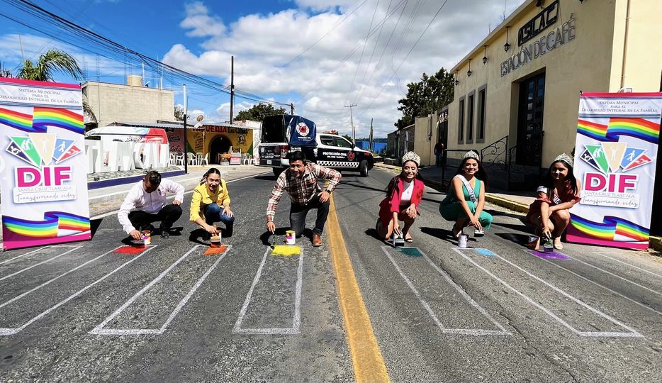 En el marco del Día Internacional del Orgullo LGBT+, el Alcalde Lic. David Martínez del Razo acompañado de su esposa la Presidenta Honorífica del SMDIF, la Reina y princesas de la Feria 2023 , esta mañana llevaron a cabo la pinta del cruce peatonal de la calle Emilio Carranza, perteneciente a la Cabecera Municipal con los colores alusivos a la bandera LGBT+.