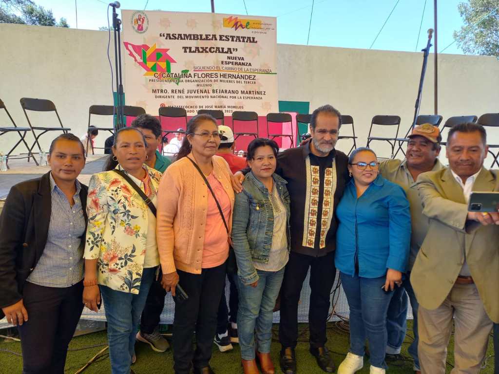El sábado pasado en el municipio de Mazatecochco estuvo en Tlaxcala como parte de una gira por el estado, el profesor René Juvenal Bejarano Martínez con el objetivo de llevar a cabo la Asamblea Estatal de Tlaxcala del Movimiento Nacional por la Esperanza, quien estuvo acompañado de doña Catalina Flores Hernández, presidenta de la Organización Mujeres del Tercer Milenio y otras personalidades locales, estatales y con la representación del senador José Narro Céspedes en la persona de Alán Cruz.