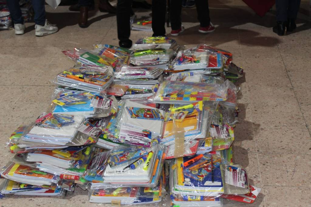 Dentro de los artículos escolares que integraron el paquete se encuentran juego de geometría, libretas, lápices de colores, goma, lápiz, lapiceros entre otros.