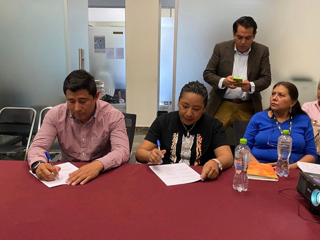 Por ello firmaron el Convenio de Colaboración con las autoridades municipales de San José Teacalco representado por Hilario Padilla Longino y Flora Cervantes Pérez, Presidente municipal y Síndico Municipal respectivamente, para delimitar el territorio entre ambas demarcaciones.