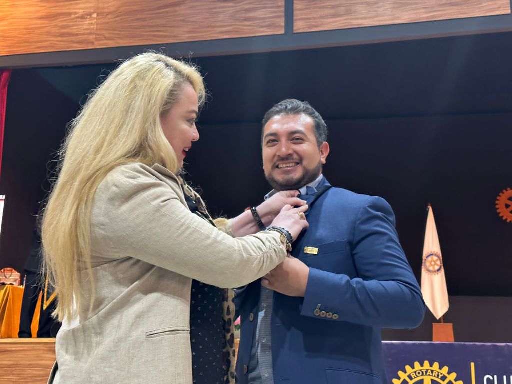 En la ex Cancha 13, el edil abotonó a los 9 nuevos integrantes del Club Rotario, quienes fungirán en acciones y actividades de labor social.