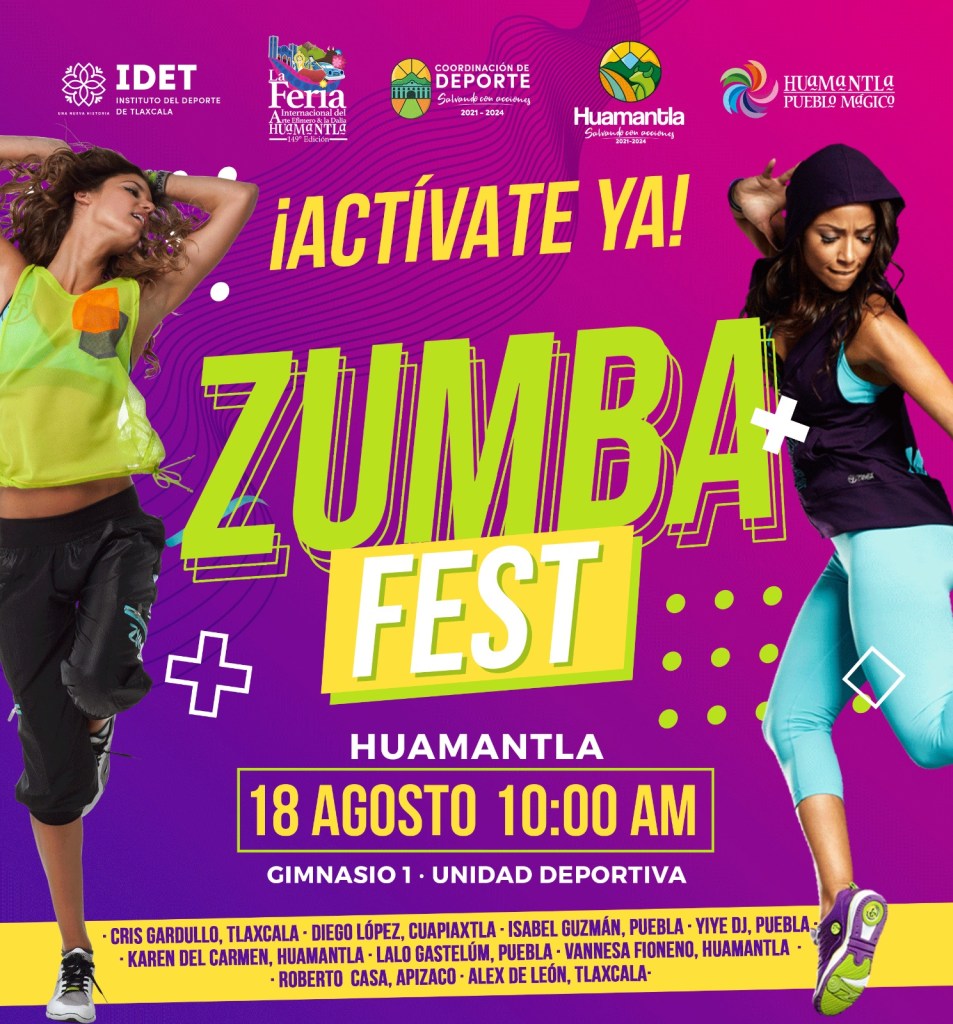 Para el 18 de agosto, se llevará a cabo el Zumba Fest a las 10:00 horas en el gimnasio uno de la Unidad Deportiva, con instructores de Puebla, Apizaco, Tlaxcala y Huamantla, además de música en vivo y grandes sorpresas, por lo tanto, toda la ciudadanía está invitada a sumarse a esta destacada actividad deportiva.
