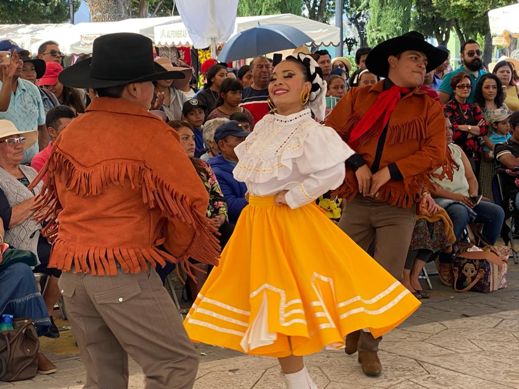 De igual manera, en el Foro del Artista del Recinto Ferial, se presentó el ballet Folclórico Cacaxtla A.C., quienes a través del baile promueven y fortalecen la cultura local mediante presentaciones artísticas en los municipios de Tlaxcala y estados del norte del país.