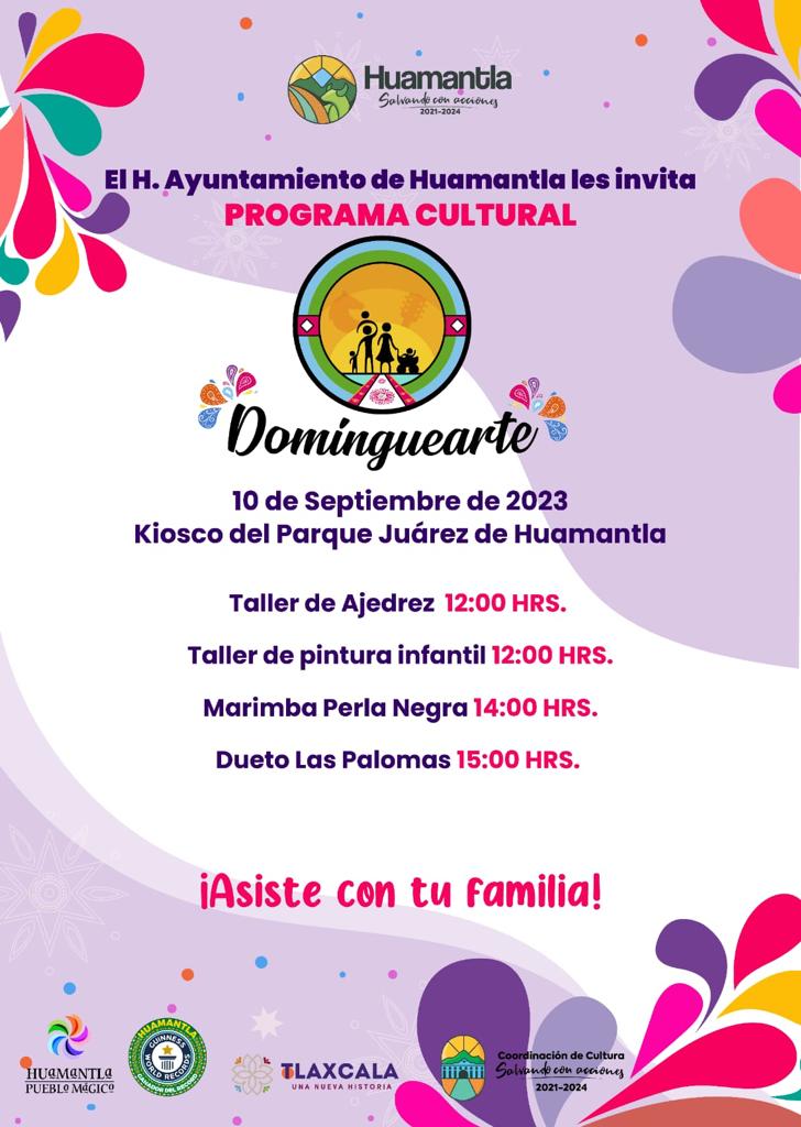 Como parte de las actividades culturales que impulsa el H. Ayuntamiento de Huamantla, que preside Salvador Santos Cedillo, este fin de semana se realizará una edición más de programa “Dominguearte”, en el escenario principal del Kiosco del Parque Juárez.