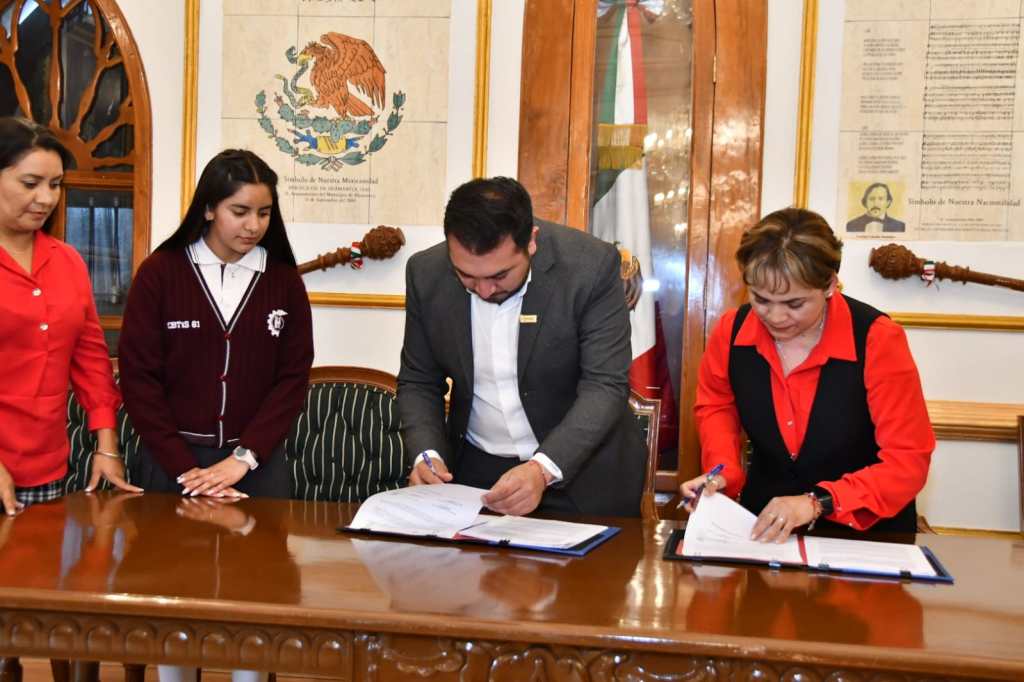 El gobierno municipal que preside Salvador Santos Cedillo, firmó un convenio de colaboración con el Centro de Bachillerato Tecnológico Industrial y de Servicios (Cbtis) No. 61, a efecto de vincular a los estudiantes de este subsistema con el sector gubernamental.