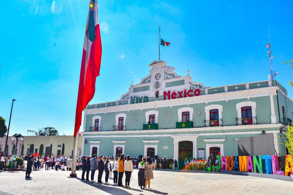 En la explanada de la Presidencia Municipal, el alcalde Santos Cedillo, acompañado de autoridades municipales, rindieron honores a los símbolos patrios donde fue izada la Bandera Nacional a media asta.