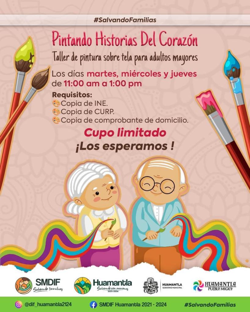 Con la finalidad de brindar un espacio de disfrute, entretenimiento y estimulación de la memoria, el Sistema Municipal para el Desarrollo Integral de la Familia (SMDIF) Huamantla, invita a los adultos mayores del municipio al taller denominado “Pintando Historias del Corazón”, que se impartirá de manera gratuita.