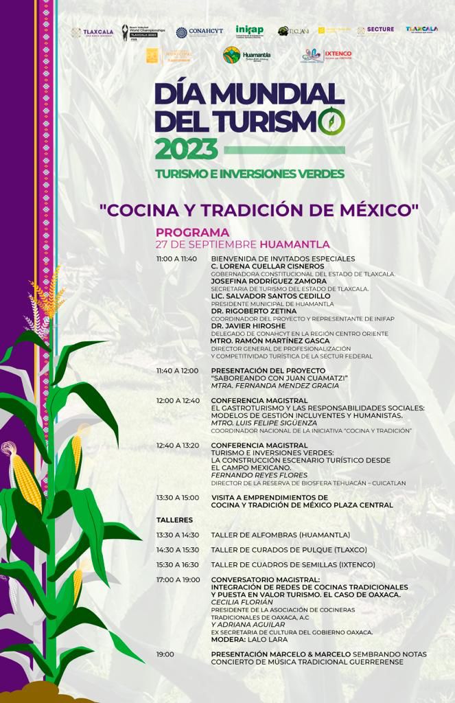 En ese sentido, la Coordinación Municipal de Turismo informa que a las 11:40 de la mañana, se tendrá la conferencia “Saboreando don Juan Camatzi”; posteriormente a las 12:00 horas, una conferencia magistral sobre el gastroturismo y las responsabilidades sociales, “Modelos de gestión incluyentes y humanistas”, por el Coordinador Nacional de la Iniciativa “Cocina y Tradición”.