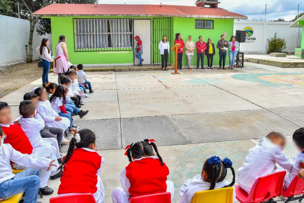 Con el propósito de brindar mayor seguridad a alumnos y docentes, así como confianza a los padres de familia, el presidente municipal de Huamantla, Salvador Santos Cedillo, realizó el corte de listón inaugural de la barda perimetral del Jardín de Niños “Bertha Von Glummer” del Pueblo de Chapultepec, cuyos trabajos de construcción fue de 338 metros lineales.