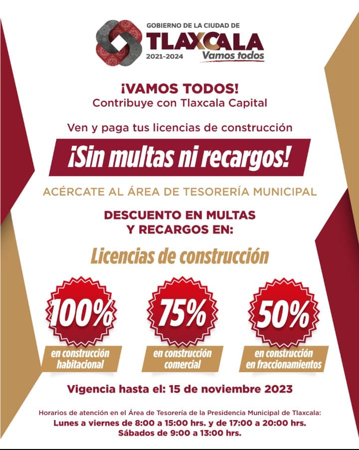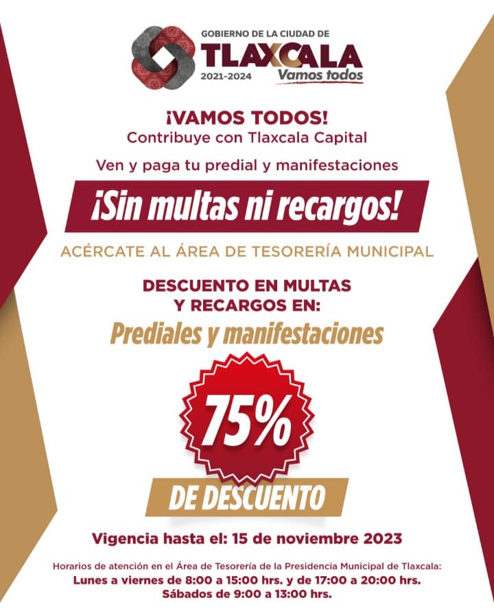 • El gobierno municipal de Tlaxcala capital, ofrece descuentos en multas y recargos de predial, manifestaciones y licencias de construcción
