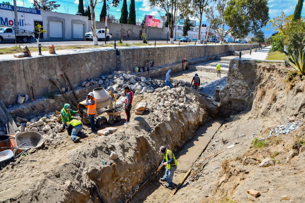 La directora de Obras, Tania Díaz Flores, enfatizó que la zona de intervención se extiende a la altura de las vías del tren que cruzan esta área, abarcando un más de 650 metros cuadrados, lo anterior con el propósito de evitar que los muros cercanos a la vía se deslaven con el tiempo, y ocasionen un accidente.