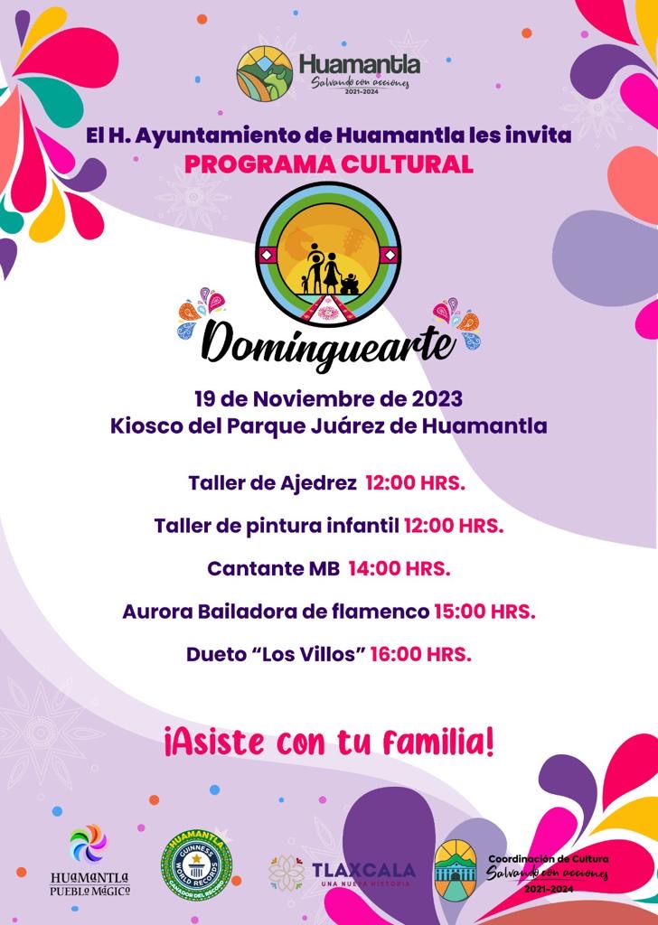 Como parte de las actividades culturales que impulsa el H. Ayuntamiento de Huamantla, que preside Salvador Santos Cedillo, este fin se espera la presencia de las familias al programa “Dominguearte”, teniendo como escenario principal el Kiosco del Parque Juárez.