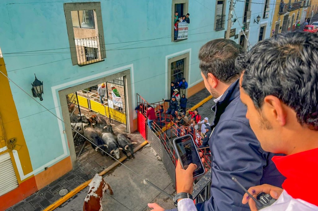 Previo a que se escuche el primer cohetón con el que se anuncia el inicio del Encierro de Toros de la “Aldea Mágica Huamantla 2023”, el presidente municipal, Salvador Santos Cedillo, supervisó que todo esté listo para este evento histórico.