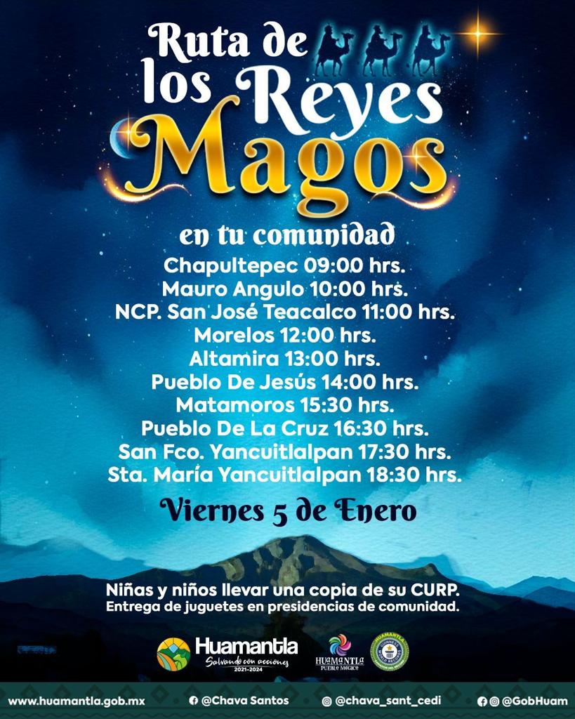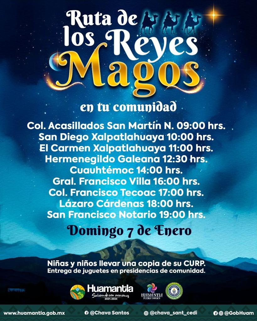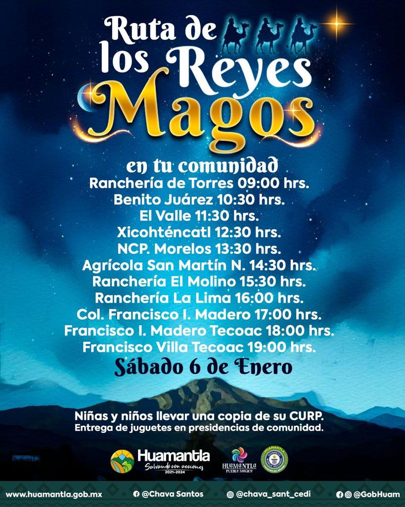 El sábado 6 de enero la alegría de niñas y niños llegará a la Ranchería de Torres, Benito Juárez, El Valle, San José Xicohténcatl, NCP Morelos, Agrícola San Martín Notario, Ranchería La Lima, Ranchería El Molino, Francisco I. Madero La Meza, Francisco I. Madero Tecoac, Colonia Francisco Tecoac y Francisco Villa Tecoac.
